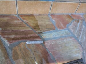 基礎・タイルどちらも専用塗料で塗装していきます☆