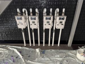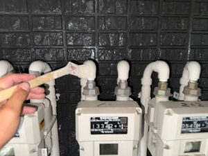 【大規模修繕工事】千葉県袖ケ浦市アパート 付帯塗装(パーテーション・ガスメーターパイプ・階段鉄部・外灯塗装)
