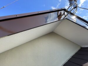 千葉県市原市T様邸 付帯塗装(破風板・縦樋・換気扇フード・霧除け塗装)
