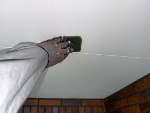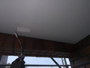 軒天塗装はスカイフレッシュ3回塗りで仕上げていきます。