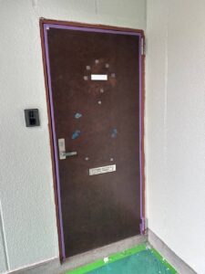 千葉県市原市アパート 付帯塗装(鉄骨階段・玄関ドア枠・換気フード・スリムダクト塗装)