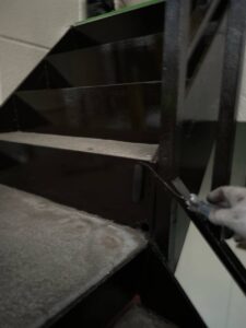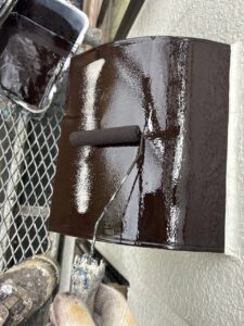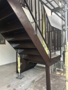アパート、鉄骨階段・玄関ドア枠・換気フード・スリムダクト塗装完了しました(^^)/