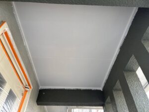 軒天塗装はスカイフレッシュ3回塗りで仕上げていきます。
