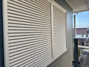 M様邸、縦樋・雨戸・換気扇フード塗装完了しました(^^)/