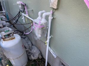 T様邸、帯板・スリムダクト・換気フード・ガスメーターパイプ塗装完了しました(≧▽≦)