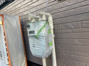 H様邸、水切り・玄関外灯・換気口・ガスメーターパイプ塗装完了しました(≧▽≦)