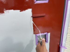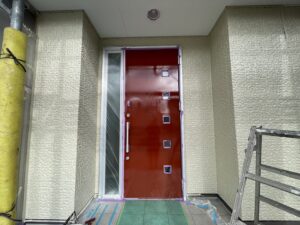 千葉県袖ケ浦市S様邸 付帯塗装(破風板・横樋・縦樋・玄関ドア塗装)