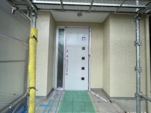 S様邸、破風板・横樋・縦樋・玄関ドア塗装完了しました(≧▽≦)