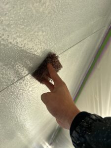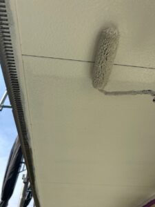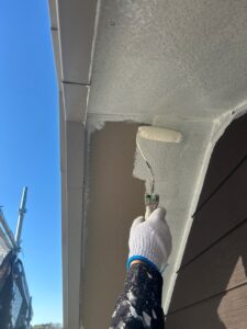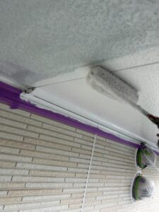 軒天塗装は下塗り後、スカイフレッシュ2回塗りの計3工程で仕上げていきます。