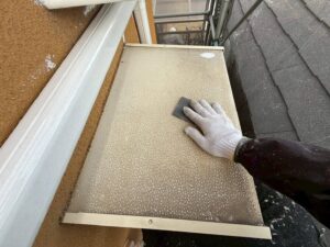 付帯部分の塗装は下地処理後、2回塗りで仕上げていきます。