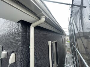 K様邸、破風板・横樋・縦樋・スリムダクト・水切り塗装完了しました(≧▽≦)