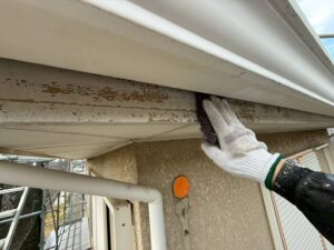 付帯部分の塗装は下地処理後、2回塗りで仕上げていきます。