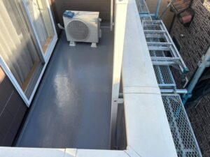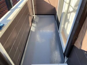 ベランダ塗装はプライマー塗布後、トップ上塗り2回塗りで仕上げていきます♪