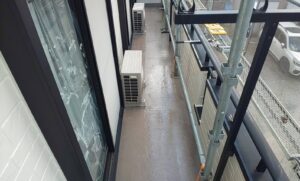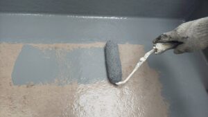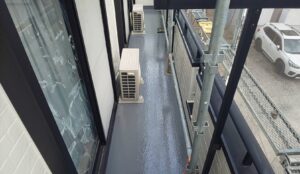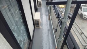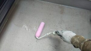 ベランダ塗装はプライマー塗布後、トップ上塗り2回塗りで仕上げていきます♪