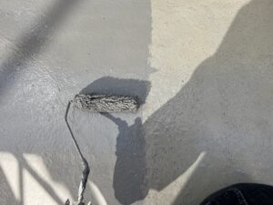 ベランダ塗装はプライマー塗布後、トップ上塗り2回塗りで仕上げていきます♪