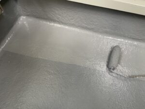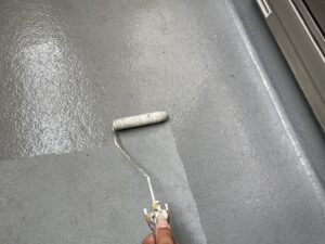 ベランダ塗装はプライマー塗布後、トップ上塗り2回塗りで仕上げていきます♪