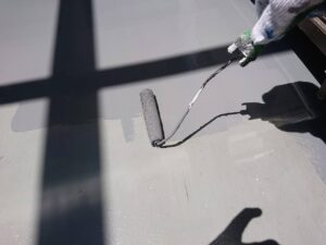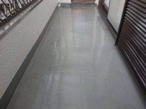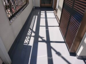 ベランダ塗装はプライマー塗布後、トップ上塗り2回塗りで仕上げていきます♪