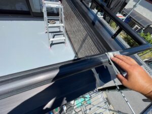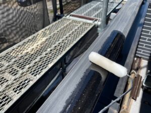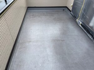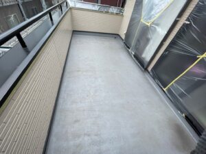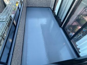 ベランダ塗装はプライマー塗布後、トップ上塗り2回塗りで仕上げていきます♪