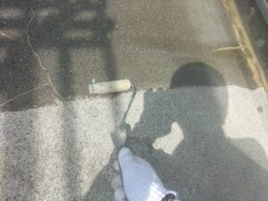 ベランダ塗装はプライマー塗布後、トップ上塗り2回塗りで仕上げていきます♪