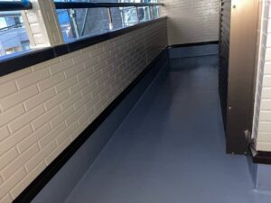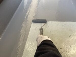 ベランダ塗装は下地処理後、プライマー塗布→トップ上塗り2回塗りで仕上げていきます♪