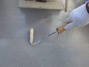ベランダ塗装は下地処理後、プライマー塗布→トップ上塗り2回塗りで仕上げていきます♪