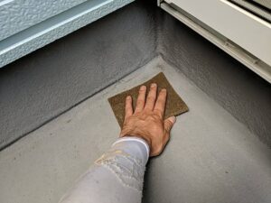 ベランダ塗装は下地処理があれば行い、プライマー塗布後、トップ上塗り2回塗りで仕上げていきます♪