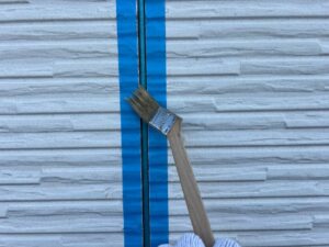 なので、既存コーキングの上にプライマーを塗布していきます。