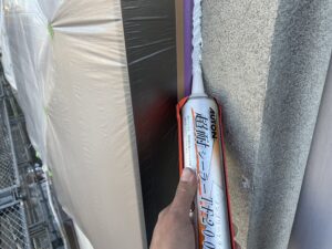 サッシ廻り部分のみコーキングの増し打ちを行っていきます。