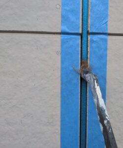 縦目地は撤去打ち替え、入隅・サッシ廻りなどは撤去が困難な為、増し打ちをして仕上げていきます!