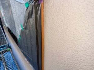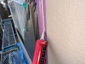 サッシ廻りのコーキングは既存のコーキングの撤去が困難な為、増し打ちを行っていきます。