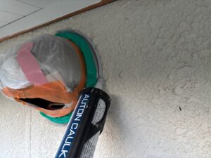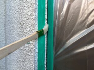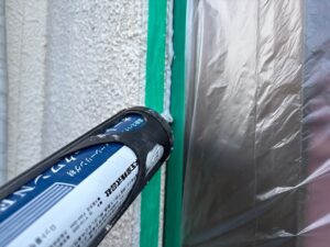 サッシ廻りのコーキングは既存のコーキングの撤去が困難な為、増し打ちを行っていきます。