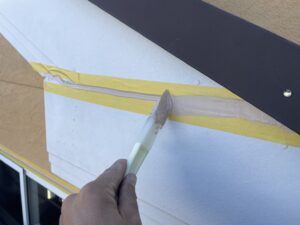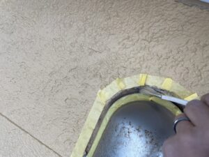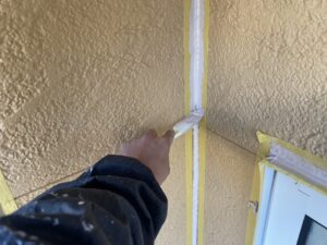 サッシ廻りなどは既存のコーキングの撤去が難しい為、増し打ちをしていきます(^^)