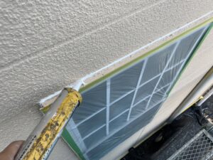 サッシ廻りなどは既存のコーキングの撤去が難しい為、増し打ちをしていきます(^^)