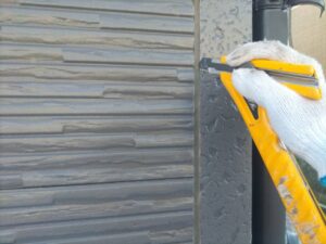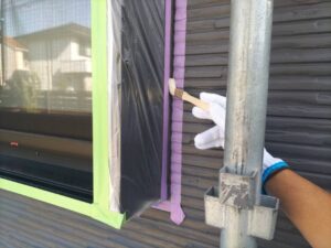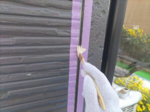 サッシ廻りなどは既存のコーキングの撤去が難しい為、増し打ちをしていきます(^^)