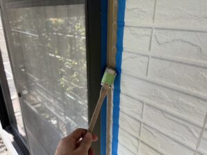 サッシ廻りなどは既存のコーキングの撤去が難しい為、増し打ちをしていきます(^^)