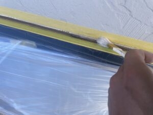サッシ廻りなどは既存のコーキングの撤去が難しい為、増し打ちをしていきます(^^)