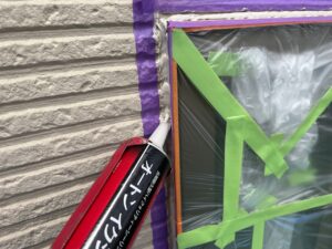 サッシ廻りなどは既存のコーキングの撤去が難しい為、増し打ちをしていきます(^^)
