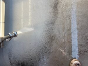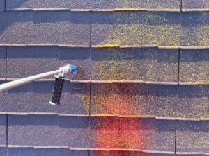 長年のよごれ・コケ・カビ等が付着しており、きちんと除去せずに塗装すると塗膜の剥がれを引き起こします。塗装工事は高圧洗浄や下地処理が一番重要であるにも関わらず手をぬいてしまうと、後の塗膜の剥がれなどで補修する手間がさらに増えてしまったり、長く綺麗にもつ高級塗料で施工したとしても汚れや旧塗膜からがれてしまえば塗装の意味がなくなってしまいます(>_<)