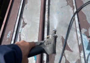 長年のよごれ・コケ・カビ等が付着しており、きちんと除去せずに塗装すると塗膜の剥がれを引き起こします。塗装工事は高圧洗浄や下地処理が一番重要であるにも関わらず手をぬいてしまうと、後の塗膜の剥がれなどで補修する手間がさらに増えてしまったり、長く綺麗にもつ高級塗料で施工したとしても汚れや旧塗膜からがれてしまえば塗装の意味がなくなってしまいます(>_<)