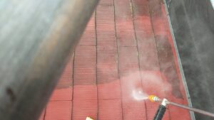 長年のよごれ・コケ・カビ等が付着しており、きちんと除去せずに塗装すると塗膜の剥がれを引き起こします。塗装工事は高圧洗浄や下地処理が一番重要であるにも関わらず手をぬいてしまうと、後の塗膜の剥がれなどで補修する手間がさらに増えてしまったり、長く綺麗にもつ高級塗料で施工したとしても汚れや旧塗膜からがれてしまえば塗装の意味がなくなってしまいます(>_<)