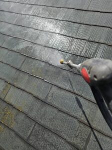 長年のよごれ・コケ・カビ等が付着しており、きちんと除去せずに塗装すると塗膜の剥がれを引き起こします。塗装工事は高圧洗浄や下地処理が一番重要であるにも関わらず手をぬいてしまうと、後の塗膜の剥がれなどで補修する手間がさらに増えてしまったり、長く綺麗にもつ高級塗料で施工したとしても汚れや旧塗膜からがれてしまえば塗装の意味がなくなってしまいます(>_<)