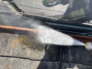 長年のよごれ・コケ・カビ等が付着しており、きちんと除去せずに塗装すると塗膜の剥がれを引き起こします。塗装工事は高圧洗浄や下地処理が一番重要であるにも関わらず手をぬいてしまうと、後の塗膜の剥がれなどで補修する手間がさらに増えてしまったり、長く綺麗にもつ高級塗料で施工したとしても汚れや旧塗膜からがれてしまえば塗装の意味がなくなってしまいます(>_<)
