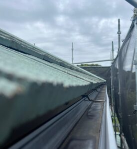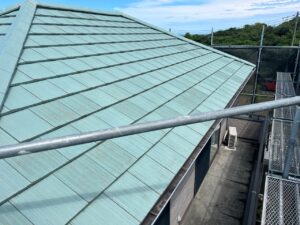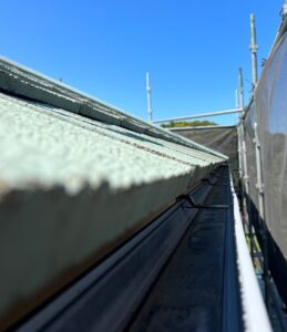 長年のよごれ・コケ・カビ等が付着しており、きちんと除去せずに塗装すると塗膜の剥がれを引き起こします。塗装工事は高圧洗浄や下地処理が一番重要であるにも関わらず手をぬいてしまうと、後の塗膜の剥がれなどで補修する手間がさらに増えてしまったり、長く綺麗にもつ高級塗料で施工したとしても汚れや旧塗膜からがれてしまえば塗装の意味がなくなってしまいます(>_<)
