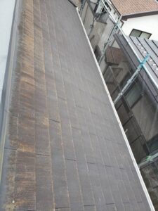 長年のよごれ・コケ・カビ等が付着しており、きちんと除去せずに塗装すると塗膜の剥がれを引き起こします。塗装工事は高圧洗浄や下地処理が一番重要であるにも関わらず手をぬいてしまうと、後の塗膜の剥がれなどで補修する手間がさらに増えてしまったり、長く綺麗にもつ高級塗料で施工したとしても汚れや旧塗膜からがれてしまえば塗装の意味がなくなってしまいます(>_<)