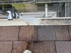 長年のよごれ・コケ・カビ等が付着しており、きちんと除去せずに塗装すると塗膜の剥がれを引き起こします。塗装工事は高圧洗浄や下地処理が一番重要であるにも関わらず手をぬいてしまうと、後の塗膜の剥がれなどで補修する手間がさらに増えてしまったり、長く綺麗にもつ高級塗料で施工したとしても汚れや旧塗膜からがれてしまえば塗装の意味がなくなってしまいます(>_<)