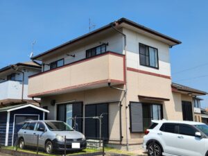 屋施工前は優しいお色の外観でしたが、やはり色褪せや汚れが目立ってしまっていました(>_<)