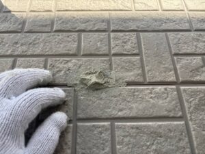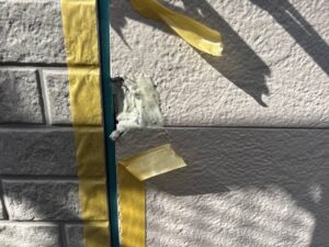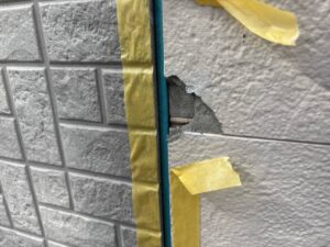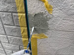 外壁の欠けてしまっている部分やクラックの部分は塗装前に補修していきます!