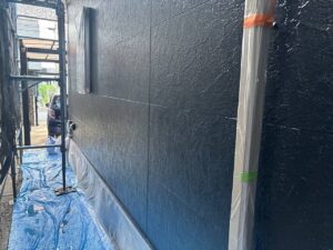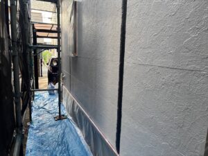 外壁の下地処理完了しました。塗装工程に入ります(^^)/