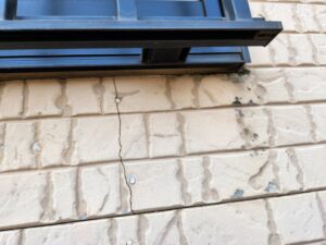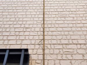 複数コーキング付近にクラックが見られ、外壁が欠けてしまっているところも見られました。