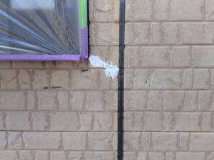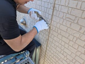 外壁の欠けてしまっている部分やクラックの部分は塗装前に補修をしていきます!